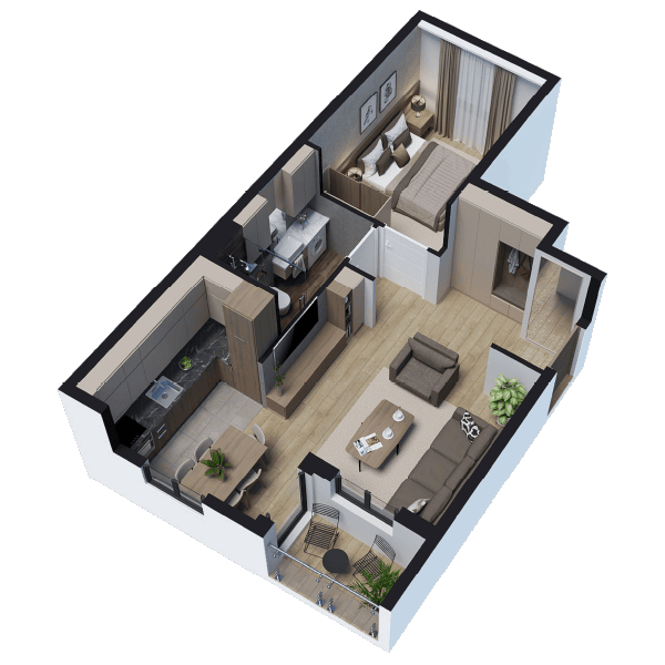 Dvosoban stan na prvom spratu ukupne površine od 40 m2 sa terasom.