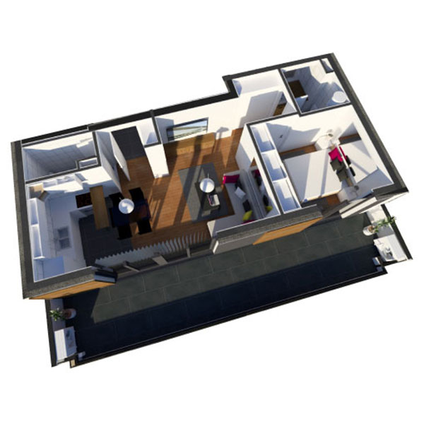 Dvosoban stan na poslednjem spratu površine od 70.42 m2 sa terasom.