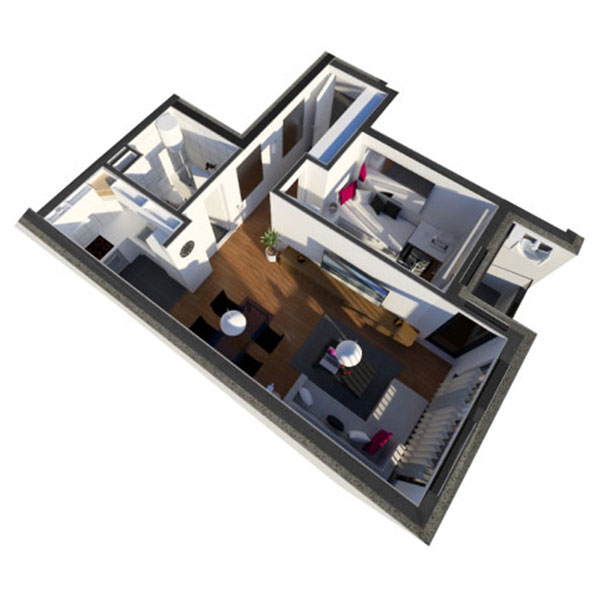 Dvosoban stan na prvom spratu ukupne površine od 39.77 m2 sa terasom.
